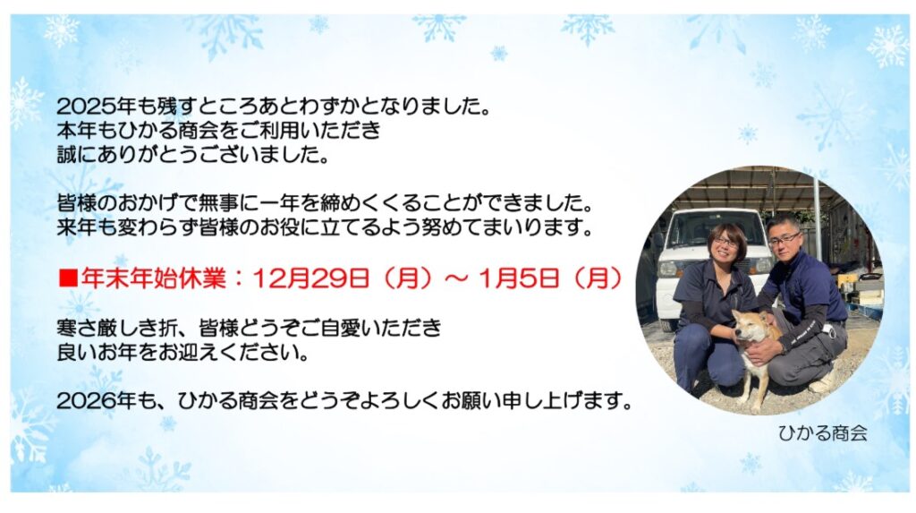 2026年も、ひかる商会をどうぞよろしくお願い申し上げます。
